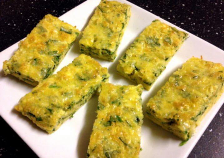 Mix spinach, zucchini, half of the cheese (so 1/4 cup), and eggs together.
