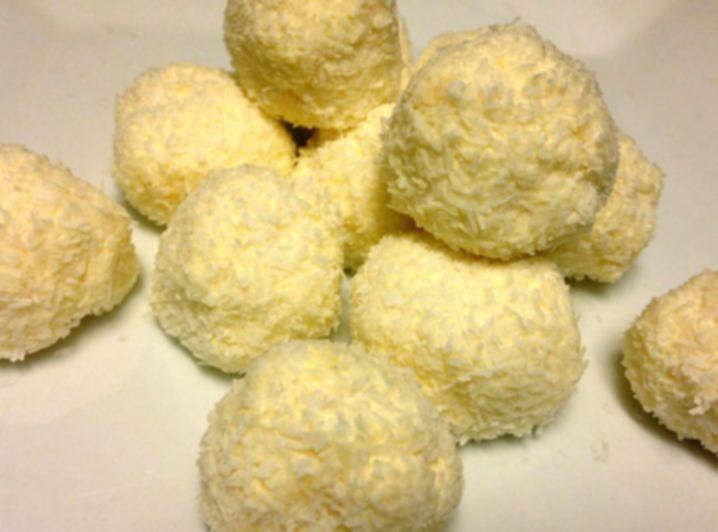 Remove from food processor and roll the mixture into little balls (if the mixture is too sloppy to roll, you may need to put it in the fridge for 10-15 minutes to firm it up a bit) then roll the balls in coconut to coat them.