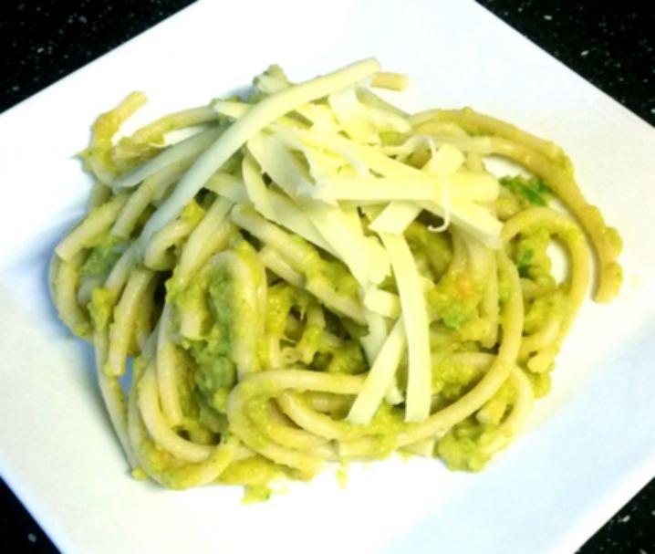 Once vegetables are cooked, strain if necessary and put into a blender. Add onion, garlic, cheese, basil and pepper.