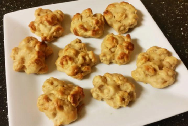 Drop small spoonfuls of the mixture onto the prepared baking tray, evenly spaced. Gently press down to flatten slightly.