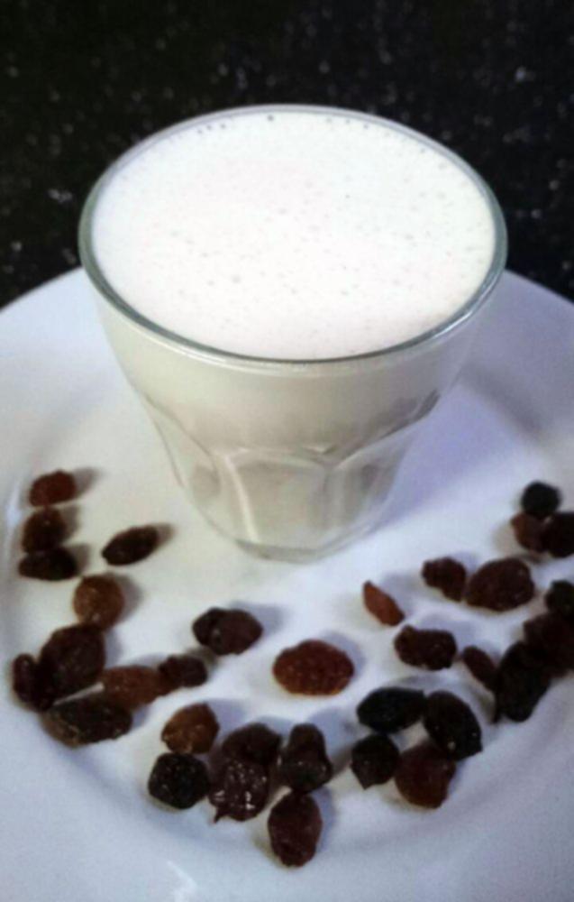 Wheat bran is an excellent source of dietary fiber as well as protein, and a great way of serving it is in shakes. This one is sweetened by sultanas and raw honey. It's a great shake to serve your toddler with breakfast.