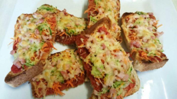 Like pizza, but on toast! These tasty toast pizzas have zucchini and carrot snuck in and hidden among all the cheese and bacon, so are a great choice for fussy toddlers who don't like their vegetables.