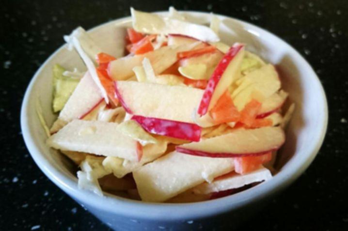 This crisp apple salad uses apples for sweetness and makes a perfect toddler lunch on a hot day.